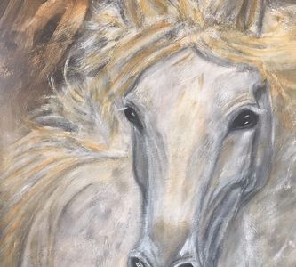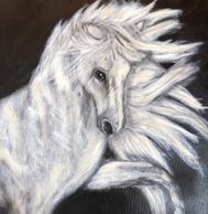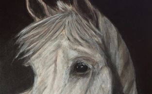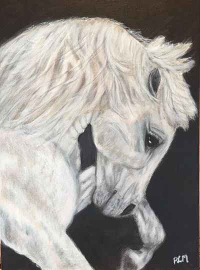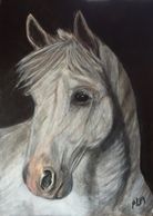 Intel is one of the smartest and most elegant Lipizzaners I've painted. So calm and knowing, he's alert as you can see from his ears, but never startled, curious but not wary, trusting in himself as much as his owner.