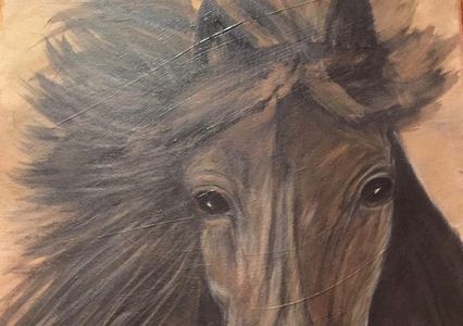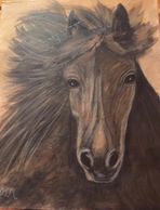 Ingenue is the warmblood I always wanted. Strikingly beautiful in the sunlight picking up an array of colors on her sleek body. She's not too large, gentle and thoughtful and will listen to her rider. She's the perfect lady for the perfect lady. 14" X 18" Archival Canvas Giclee of the original acrylic and charcoal.