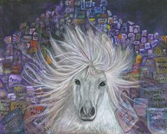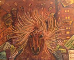 A tribute to the "mares who marched" into the inner cities. 24"X30" Archival Canvas Giclee depicts a brave young mare running through the city demanding justice. A Limited Edition Archival Giclee reproduction of the original acrylic and charcoal artwork.